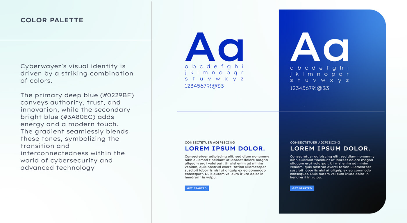 The color scheme should be minimalistic yet impactful, featuring industry-aligned tones such as blue, green, gray, and black. These colors are carefully chosen to evoke feelings of security, stability, and technological precision.